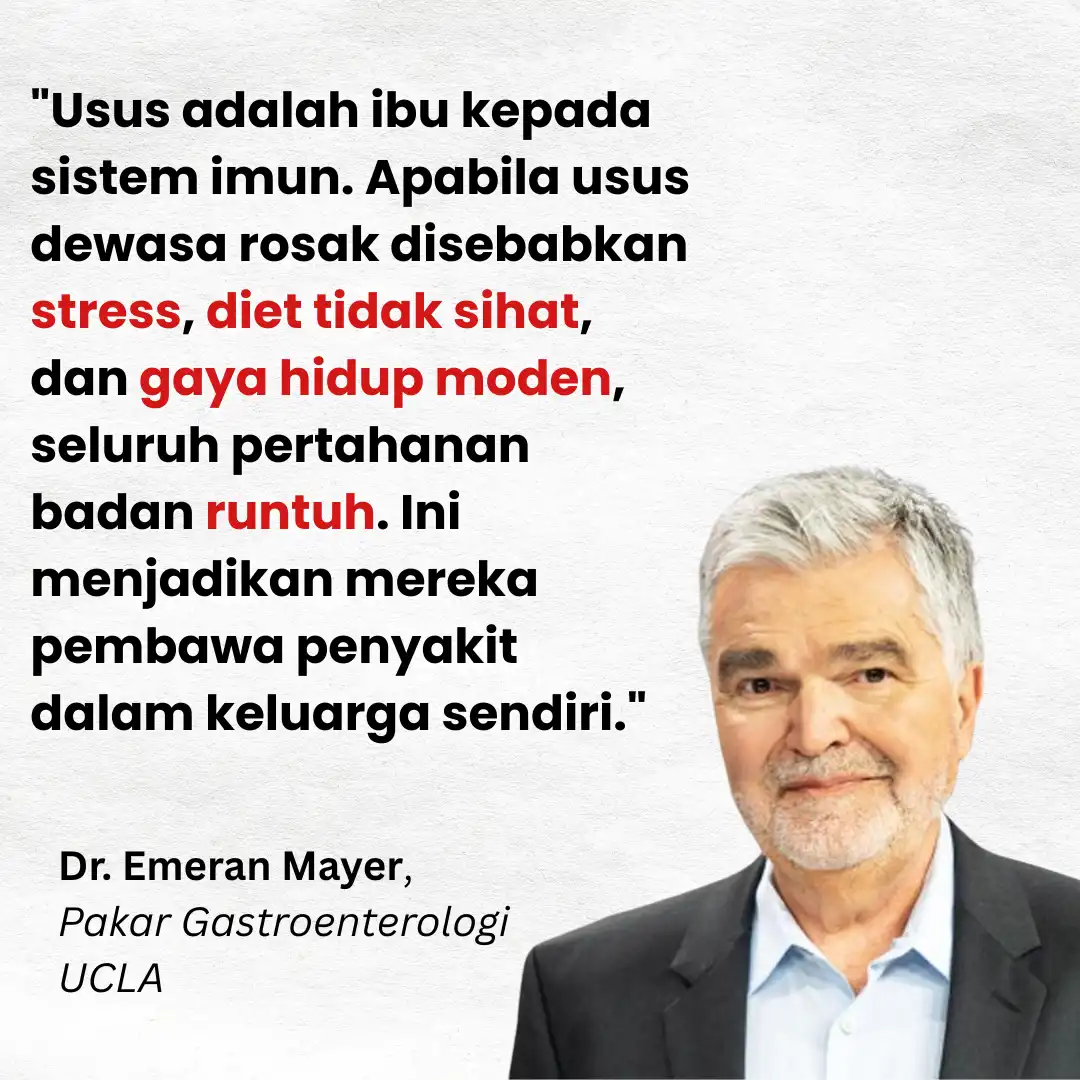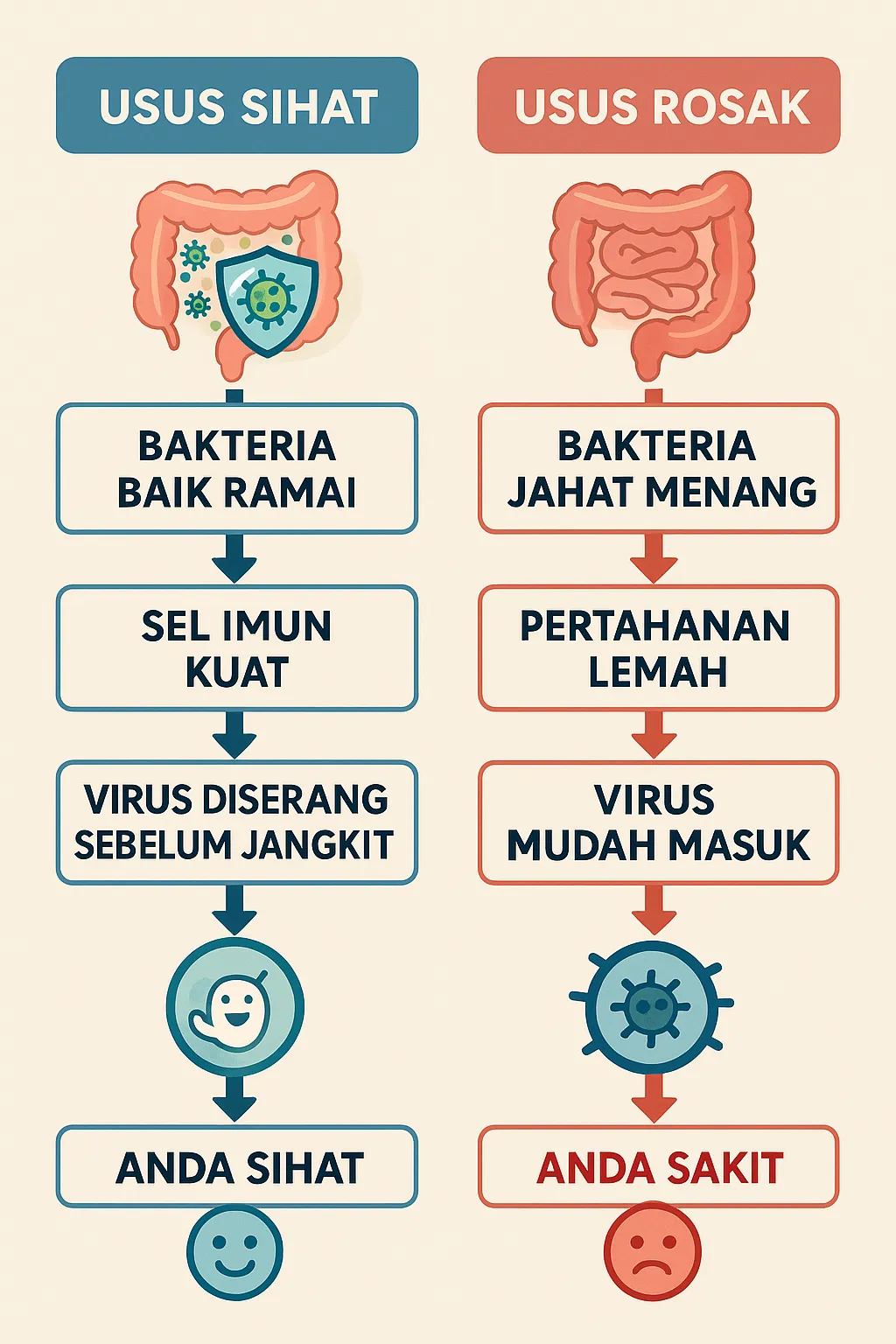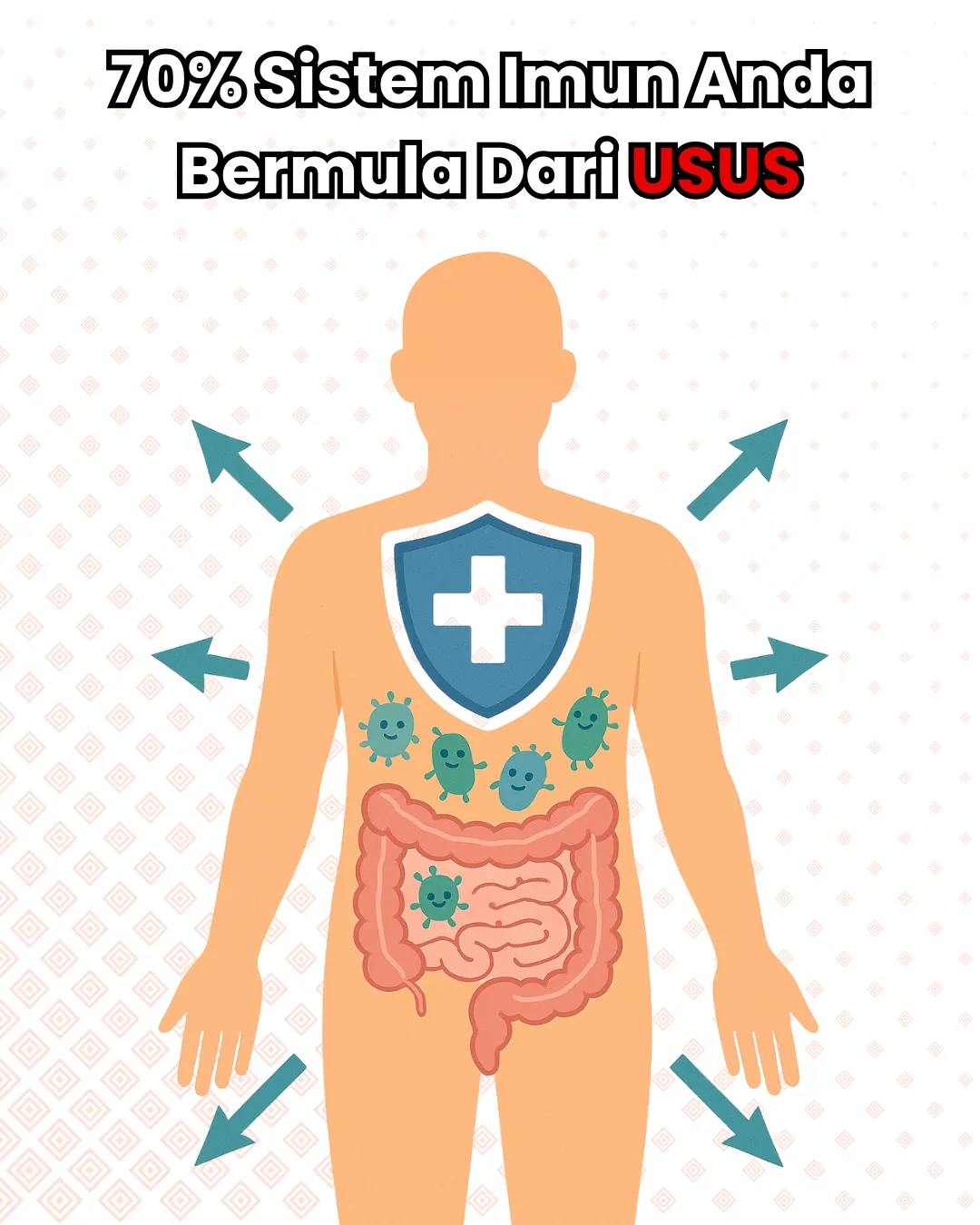 📊 Nature Reviews Immunology (2015): Usus yang tidak seimbang = 3x lebih mudah dapat jangkitan