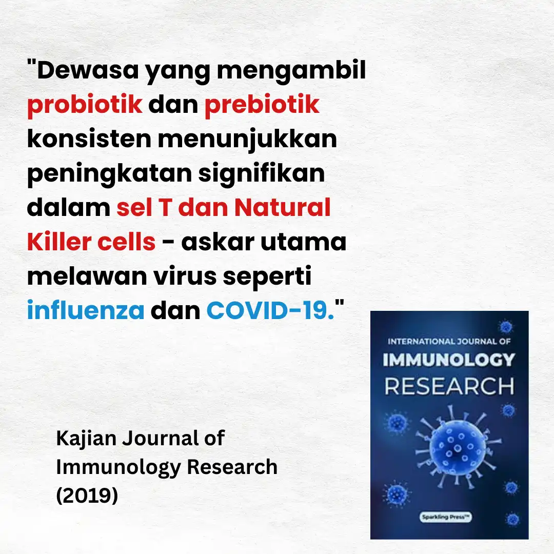 📊 Cochrane Database (2015): Probiotik + Prebiotik kurangkan 42% risiko influenza pada dewasa